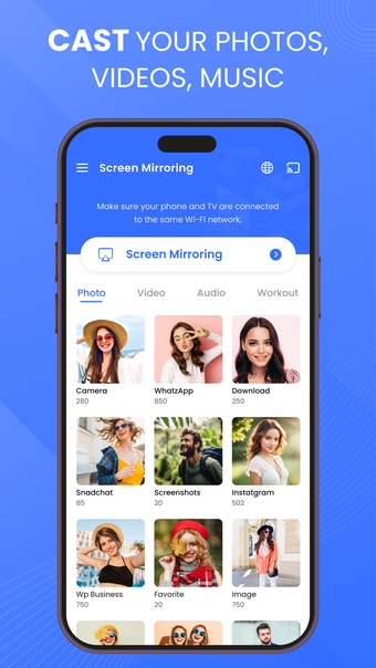 Z Screen Mirroring: Smart TV użytkownicy mogą łatwo przesyłać różnorodne pliki multimedialne na swój telewizor, w tym filmy, zdjęcia i pliki audio. Aplikacja zapewnia prosty i szybki proces połączenia za pomocą jednego kliknięcia, co czyni ją przyjazną dla użytkownika opcją do odbijania ekranu. Dodatkowo użytkownicy mogą szybko odbijać swoje ekrany iPhone'a na większy ekran telewizora, zapewniając ulepszony sposób oglądania.
